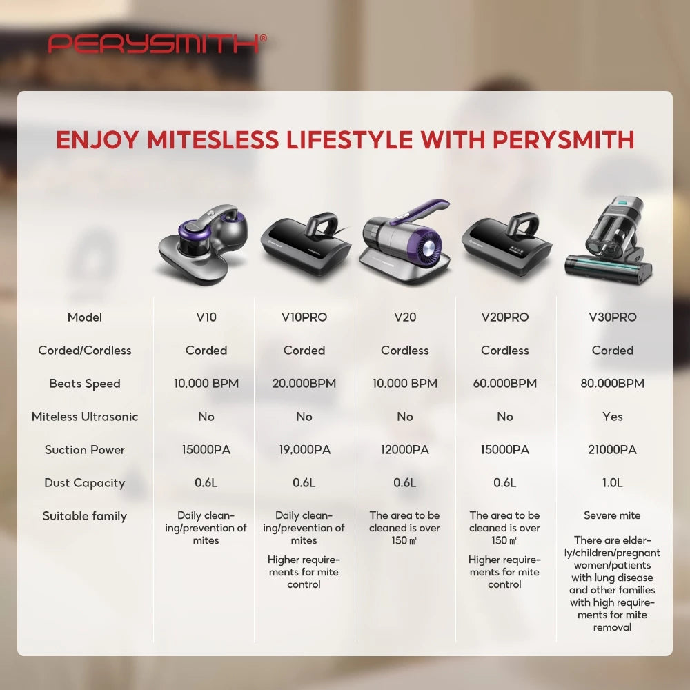 PerySmith V10PRO Dust Mite VacuumCleaner For Bed and Sofa with UV Sterilizer Anti-Mite bed vacuum